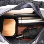 カーブが美しいハーフムーン形の本体は、サイズが幅500×高さ300×マチ幅160mm、重さは約700g。約24Lの容量が少なく感じるほどの余裕たっぷりな設計で、A4書類や14インチPC、折りたたみ傘、タンブラーなど、さまざまなアイテムを気兼ねなく収納できます。
