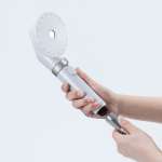 本体のサイズは幅約10cm×奥行約9.8cm×高さ約23.5cmで、重さは約227g(いずれも付属品を除く)。シャワーホースへの取り付けは工具不要で簡単に行うことができ、3種類のアダプターからシャワーホース金具に合うものを選択すればOK。