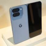 ▲Pixel 10 Pro Foldは外観の展示のみで、触れることはできなかったが、サイズ感は前モデルのPixel 9 Pro Foldと同等