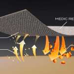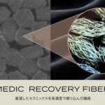 ハラマキに採用している独自開発素材の“メディックリカバリーファイバー”は、一般医療機器のリカバリーウエアのために開発した新素材で、天然鉱物を原料とするセラミックス、その中でも純度の高い厳選したセラミックスを数種類ブレンド。