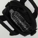 フロントに配した収納部にも2つの小分けポケットとキーフックを備え、右サイドには傘やウォーターボトルなどを入れられるボトルホルダーを、左サイドには縦型のファスナーポケットを付けるなど、収納力にも優れています。