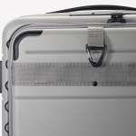 さらにフロントには、ヘルメットなどを外付けできるフックやモールテープ、サイド部分にはデイジーチェーンを装備。前述の付属ポーチには反射材がついているので、このフックに取り付けておけばスーツケースの視認性アップにも一役買います。