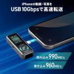なおデータの転送速度は理論値最大読み出し990MB/s、書き込み960MB/s。充電用USBポートは有線イヤホンやマイクなど周辺機器の接続にも対応、取り付けた状態のままでの撮影・録音、音楽や動画鑑賞も楽しめます。