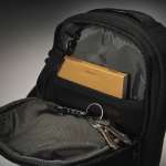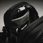フロントにはサブ収納部を装備。中にはストレッチメッシュポケットやキーストラップを備えています。また、背面に配置したオープンポケットは頻繁に出し入れするパスケースなどの収納に最適。本体上部には手持ちしやすいトップハンドルも配置しています。