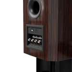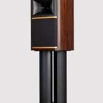 柔らかな曲線を描くキャビネットは内部定在波の発生を抑制。ハイグロス・エボニー天然木突板仕上げのエンクロージャーが高級感を引き立てます。