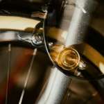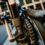 この真鍮製のコインはフロントフォークに装着可能。職人のイニシャル入りという特別感に加え、真鍮ならではの経年変化も楽しめるディテールとなっています。