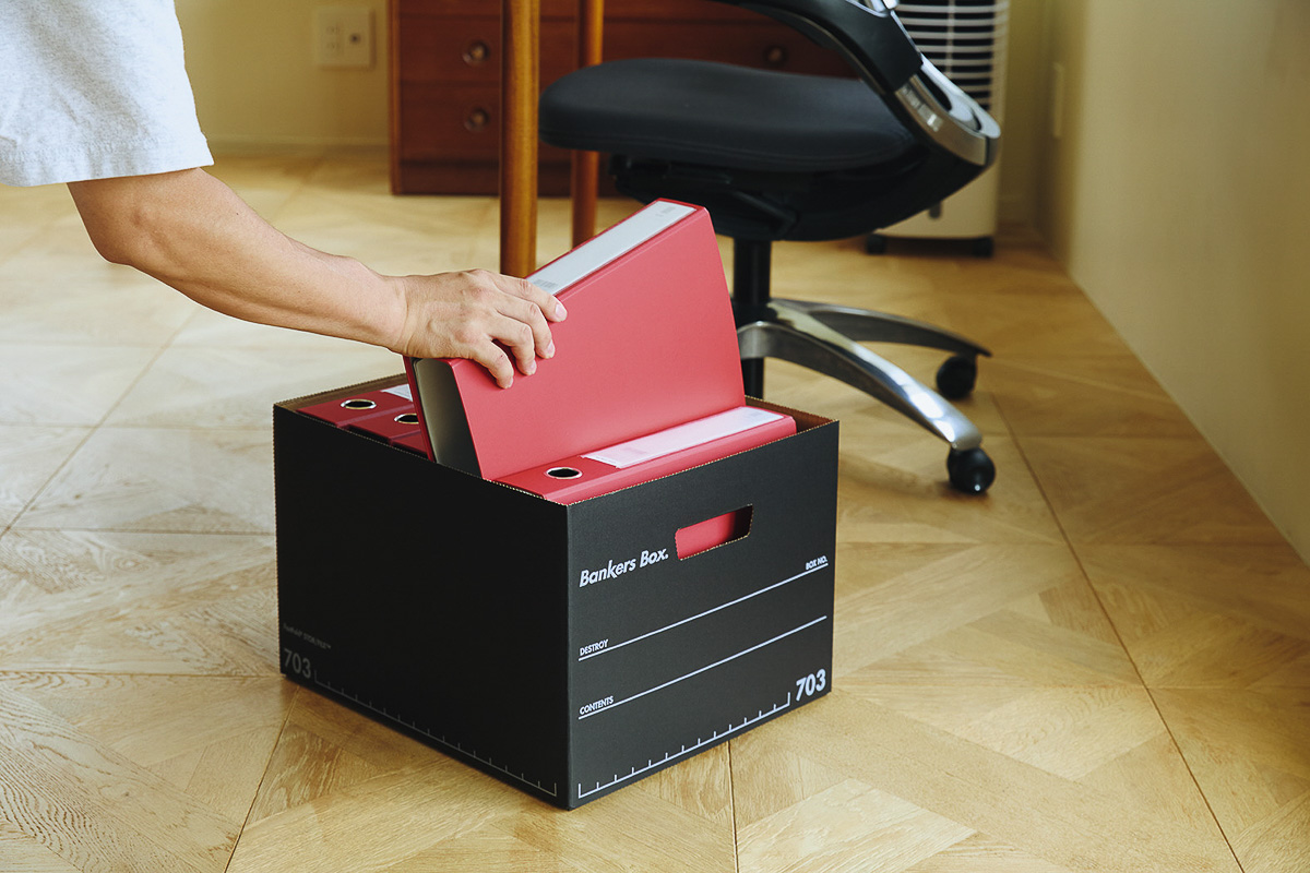 そんな“見せる収納”の代表格といえるのが、フェローズの「バンカーズボックス」。1917年の誕生以来、軽くて丈夫で組み立てやすい実用性と、無駄を省いたシンプルで生活感を抑えたルックスで、100年以上愛され続けている定番の収納ボックスです。