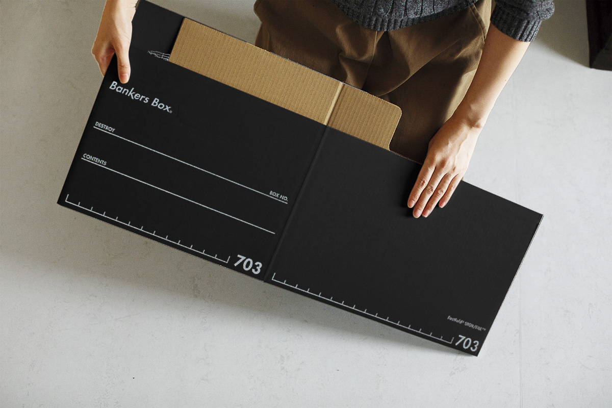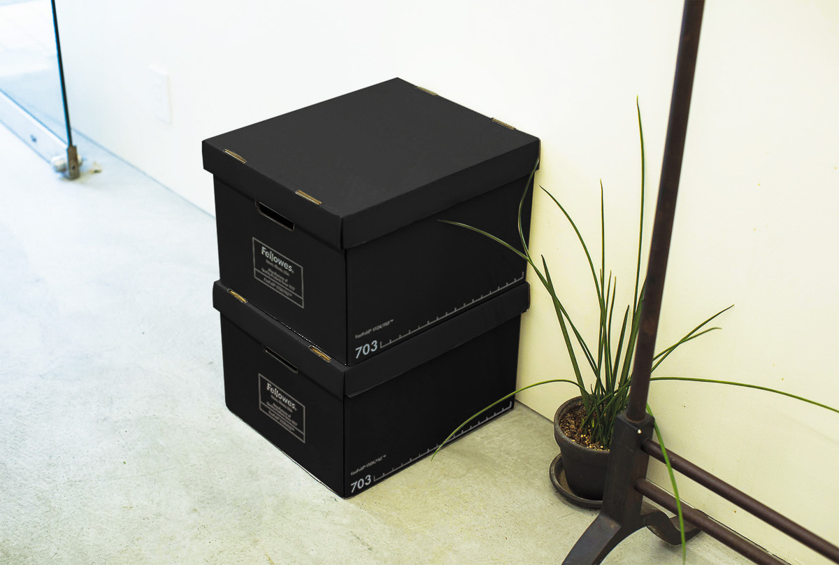 バンカーズボックスはすべて日本国内で製造され、その工程の約半分は熟練工による手作業。高い品質が守られているのも特徴です。さらに古紙を主原料としたリサイクル素材を活かし、環境負荷にも配慮したつくりとなっています。