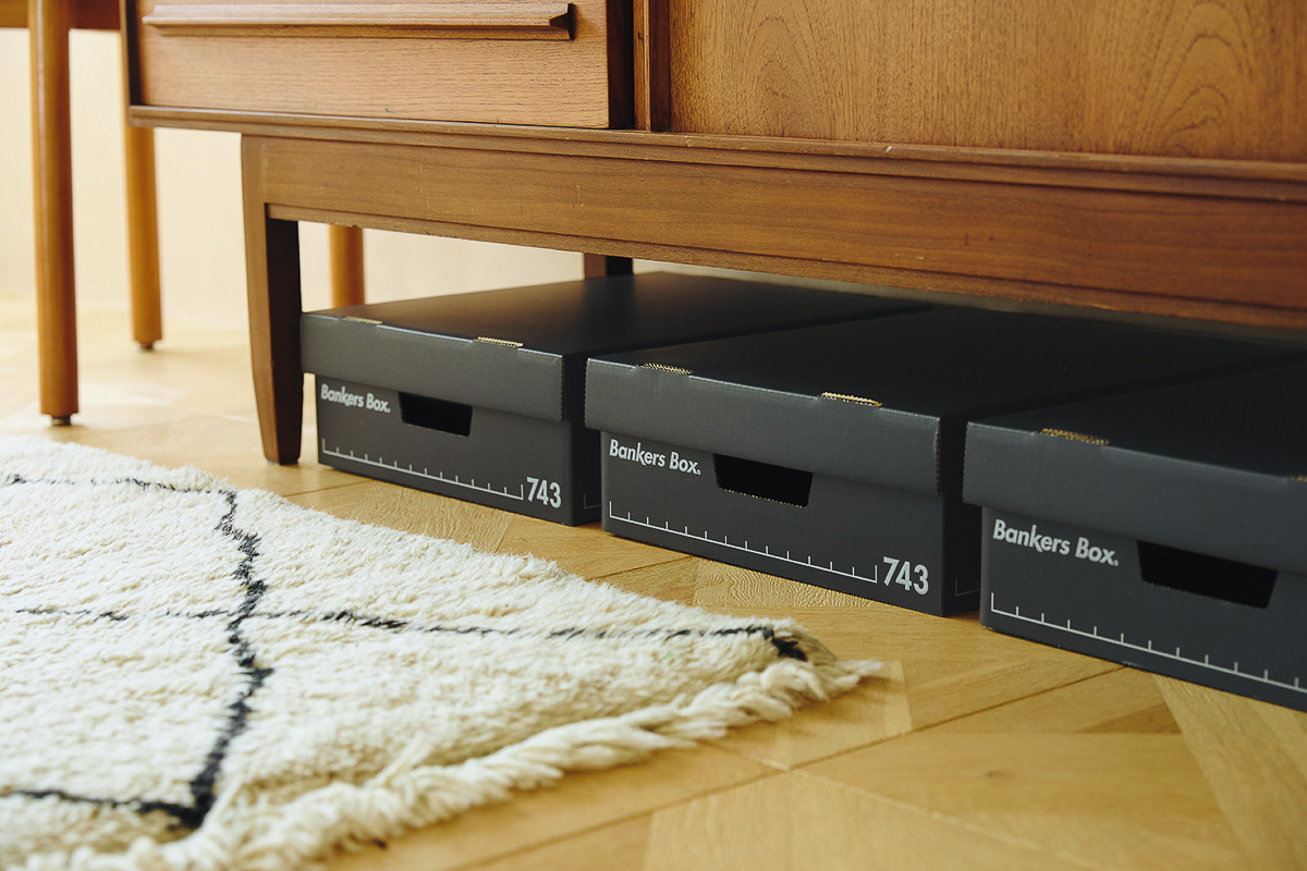 バンカーズボックスは、段ボール製ながら独自の構造により、高い耐久性を実現。紙素材とは思えないほど頑丈で、長期間の使用にも耐えうる作りとなっています。
