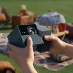 本体は充電式で、66Whの大容量バッテリーを内蔵。最大3時間の動画再生に対応し、電源が取れない庭先やベランダでも本格的な映像体験を楽しめます。キャンプ場や旅先で大画面上映会を開く、といった使い方も可能です。