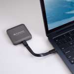 本体サイズは69.5×63×厚さ10mm、重さ48gの軽量コンパクト設計。ラインナップは1TB(1万7800円)・2TB(2万9800円)・4TB(5万4800円)と、PC並みの大容量をそろえます。外部機器との接続はUSB Type-Cケーブルで行います。