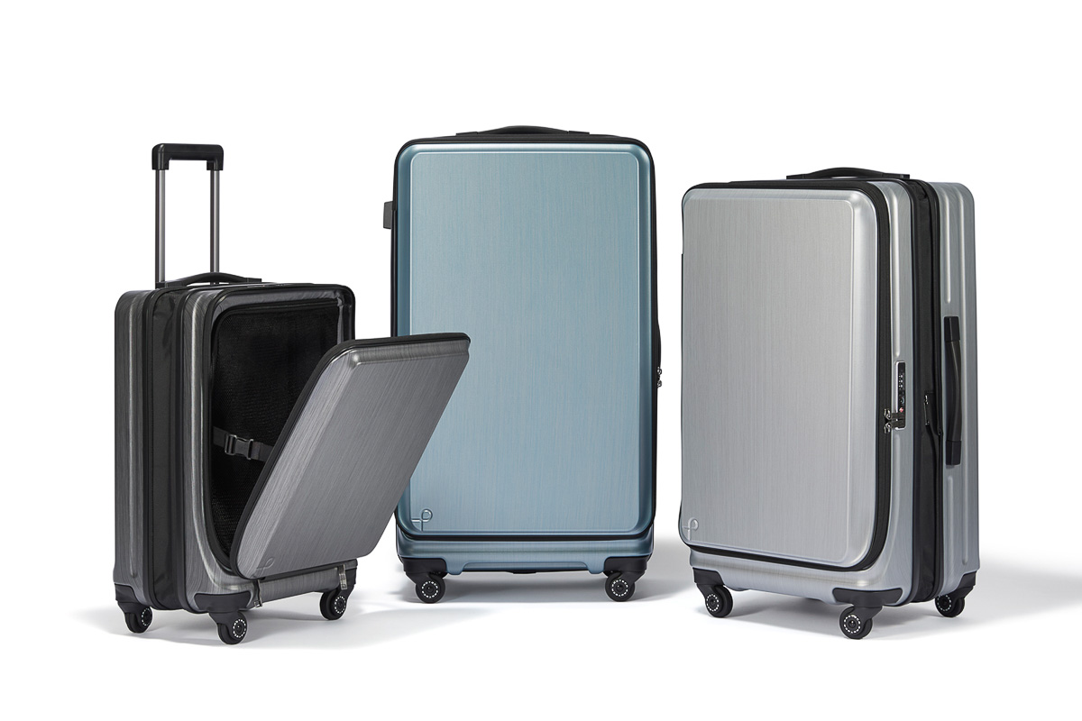 キレのあるシャープなデザインが目を惹く「フレスターEX」は、機内持込サイズ(7万7000円)と預け入れ2サイズ(8万800円/9万3500円)の3サイズがラインナップ。