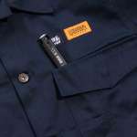 胸ポケットはフラップを開かなくても出し入れできる設計に。ドライバーが隠れてしまわず、適度に頭が出るくらいの深さに取り付け、メインのポケットには太く長めのドライバーを固定収納できます。