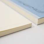 「BIBLIO NOTE」が支持される理由に機能性の高さが挙げられます。まず、見返しが厚手のボール紙になっていることで、下敷き代わりにもなるため、手に持った状態でも1ページめから書き込みやすいのが大きな特徴のひとつ。新しいノートを使うとき、書き始めの使いやすさは、そのノートを使い続けられるかどうかに直結しやすいため、うれしい配慮といえます。