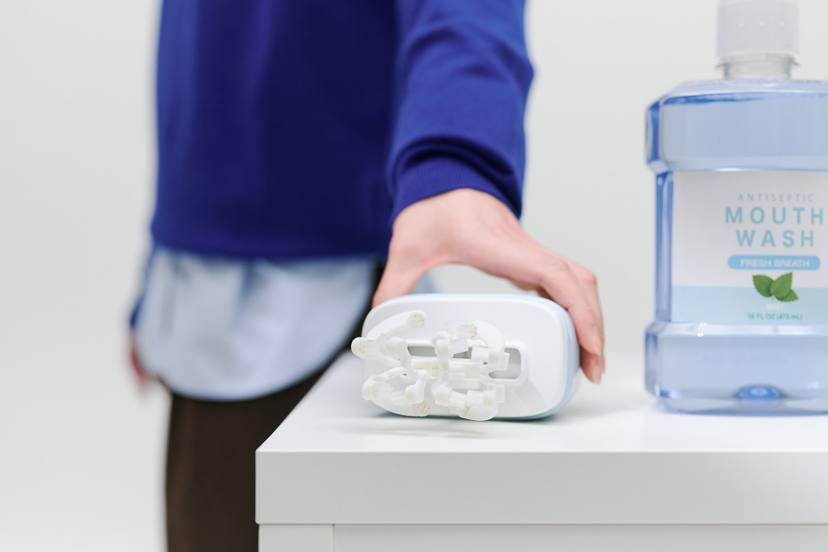 早稲田大学発のロボットベンチャー企業・Genics(ジェニックス)が開発した「g.eN」は、歯磨き機能と口腔内マッサージ機能を搭載した全自動の口腔ケアアイテム。使いたい機能に合わせてケアパーツを交換し、電源スイッチを押すだけで作業がスタートします。
