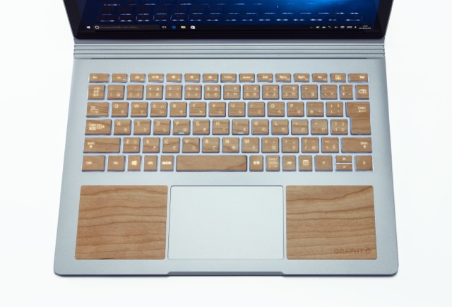 「Microsoft Surface Book」は、様々なシチュエーションで活躍する機能性、機動性、デザイン性を兼ねそなえた最新鋭機種のひとつだが、そのために作られたキートップがまさにその木目調デザインなのである。