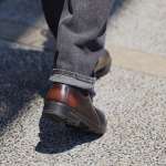 ソールは加熱した素材を金型に流し込んで、アッパーと結合させるインジェクション製法を採用。水たまりに入ってしまった時も、縫い目がないので靴底から水が浸入しにくくなっています。さらに、アッパーのレザーは油性仕上げ剤を使って耐水性を向上させているため、多少の雨なら気にする心配はありません。
