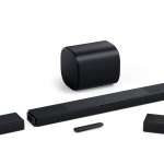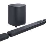 両モデルともサウンドバーの高さが約5.2cmとスリムなので、テレビの前に置いても邪魔になることはなし。サブウーファーには、映画特有のLFE(低域効果音)もしっかり再生できる25cmの大口径サブウーファーが付属します。