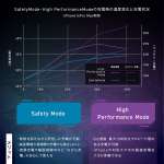 さらに“Safety Mode”と“High Performance Mode”の2つの出力の切り替え機能付き。例えば、前者であれば夏場や充電中の発熱が気になるなら温度を抑えつつ安定した充電を叶えます。ほかにも夜間の充電やながら充電などのシーンで活躍。ただ、こちらは充電スピードは遅めなのでフル充電まで若干時間がかかります。