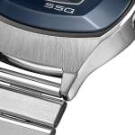 ケースの肉厚感にもご注目を。約13mmのケースは存在感抜群。これは、機械式時計に比べ最先端ながらもまだ黎明期であったクォーツ時計のムーブメントの体積に由来したもの。薄さがなにかと着目される昨今において、きっちり主張する佇まいは唯一無二と言えるかもしれません。