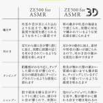 一方、発売中の「ZE500 for ASMR」は、“超近接音場”に対応した設計。たとえば“囁き声”では、声の温度や湿度までも感じるような生々しいリアリティを表現。“耳かき”では、耳の奥に音が響くような臨場感や、鼓膜のすぐそばに触れているかのような繊細なサウンドを楽しめます。