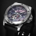 文字盤の7時位置にはオープンハートを設け、機械式ならではのテンプの動きを覗くことができる。緻密な駆動音とともに、メカニカルの魅力を手元で感じられる設計だ。