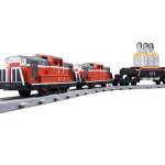 もう一方の主役が、「プラレール ヱヴァンゲリヲン新劇場版:序 ネルフ専用鉄道下二小山支線 ヤシマ作戦 DD51形&シキ880形(B2梁)大物車」(4950円)。映画で全国の電力を運搬した“電力列車”をモチーフに、3両編成で立体化している。