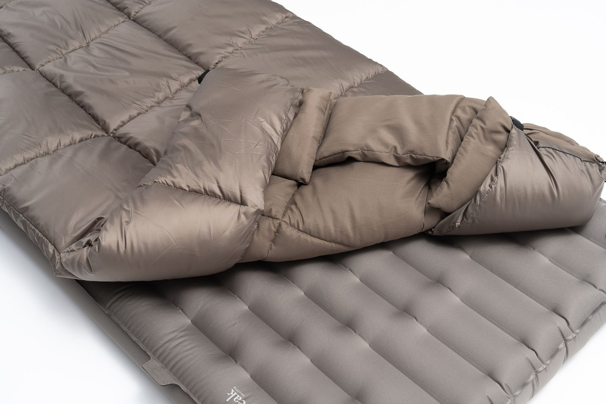 そこでスノーピークが提案するのが、テント泊でも布団で眠るような寝心地を与えてくれる“オフトンシリーズ”。その新作として登場したのが、コンパクトな掛け布団とエアマットをセットにした「システムオフトンシリーズ」(2万4200円~)です。