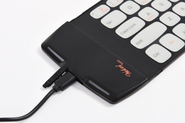 また、従来のキーボードと違ってキーの間に溝がなく、異物や埃が入らないため、衛生的にも安心です。発火の危険がないLi-Polymer(リチウムポリマー)バッテリー内蔵。micro USBで充電 (充電用USBケーブル付属)できます。