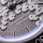 また、ユニークなのがヒラヒラとしたファントムたちの足元のように大きく波打つベゼル。放射状のサンレイ仕上げと合わさることで、より摩訶不思議な時計の印象を際立たせます。