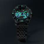 そして、裏蓋やケースサイド、ラグにも“隠れファントム”の姿が。精巧な日本製機械式ムーブメントを守るように鎮座するのはローターに化けた巨大なファントム。このファントムには秘密があり、同梱されたUVライトを当てるとファントムたちの数と同じ“50”を表すタリーマークが浮かび上がる仕掛けも。