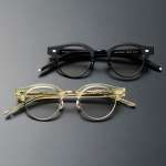 そして何と言ってもこの色味。絶妙な塩梅です。「INK×Lacquer Black」の「INK」は墨を、「Lacquer Black」は漆器をイメージし、セルロイド特有のツヤを落としてシックな雰囲気に。ただのブラックとは違う、味わい深い“黒”はまさに大人の男性好みなのではないでしょうか。一方、「HONEY」はその名前通りはちみつのような少し黄味がかった温かい色味が持ち味。クールな「INK×Lacquer Black」と打って変わって非常に穏やかな空気感を湛えています。なお、素材はいずれも希少なセルロイド製。いずれのカラーもさりげなく高級感が漂うのはそのためです。