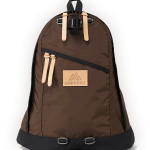グレゴリーのロングセラーモデルをベースにした小型デイパック「ファインデイ」(2万4200円)。容量は約16Lとコンパクトながら収納力があり、休日の外出やカフェワークにも最適。丸みを帯びたフォルムにブラウンナイロンの光沢が映え、軽快さの中に上品さを感じさせます。