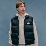 ▲「エッセンシャルズ クライマウォーム スリーストライプス パファー ダウン ベスト」