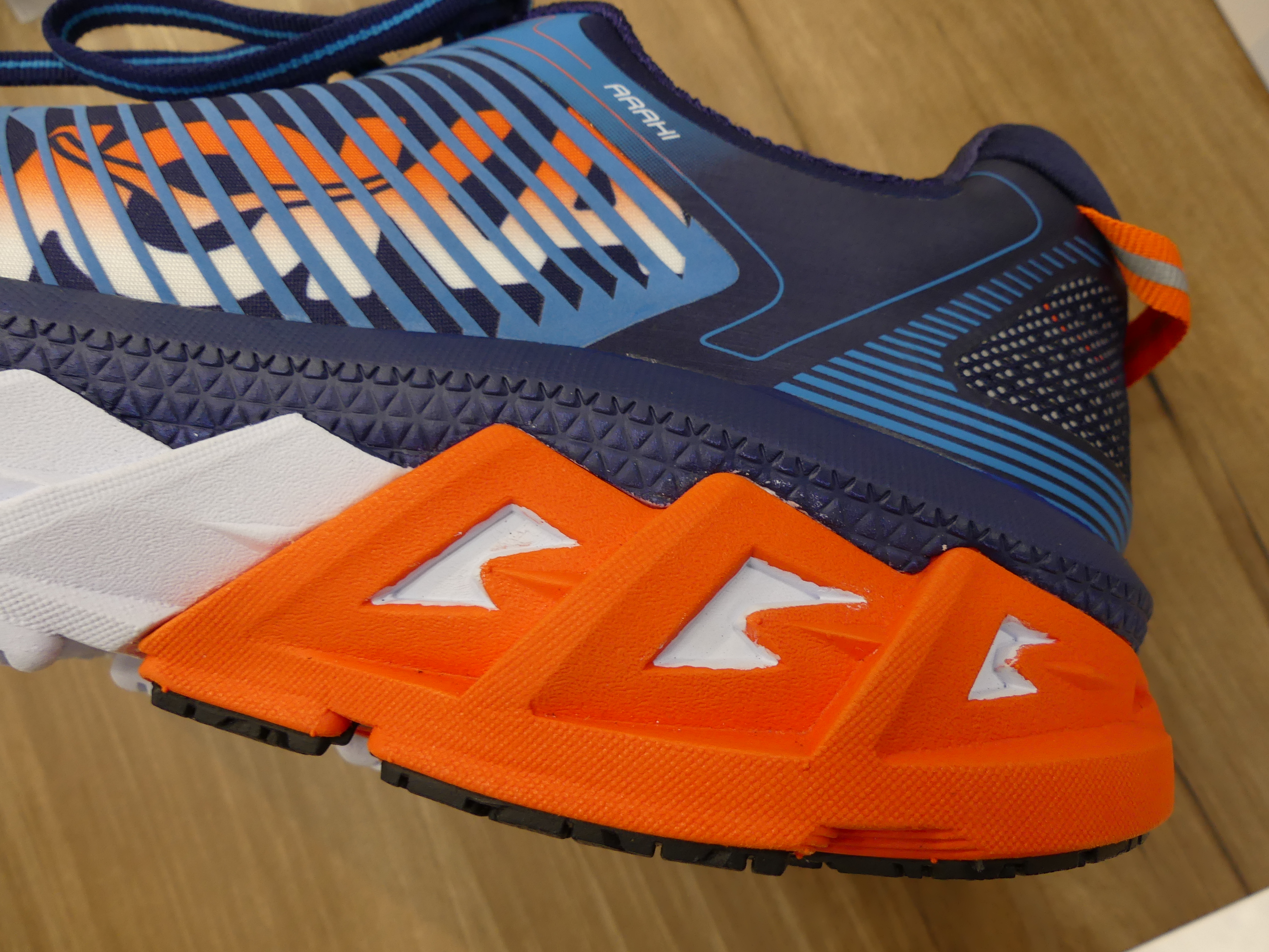 このシリーズでさらに驚くのは、分厚いラバーソール。シューズ全体の3分の1はあろうかという割合に、思わず「履いてみたい!」という感想がぽろり。さすがトレイルランニングまでカバーするという機能性の高さがウリなだけあって、衝撃吸収力がすごく高そう。アスファルトなど、固い足場を走る習慣がある人にも向いてそうです。