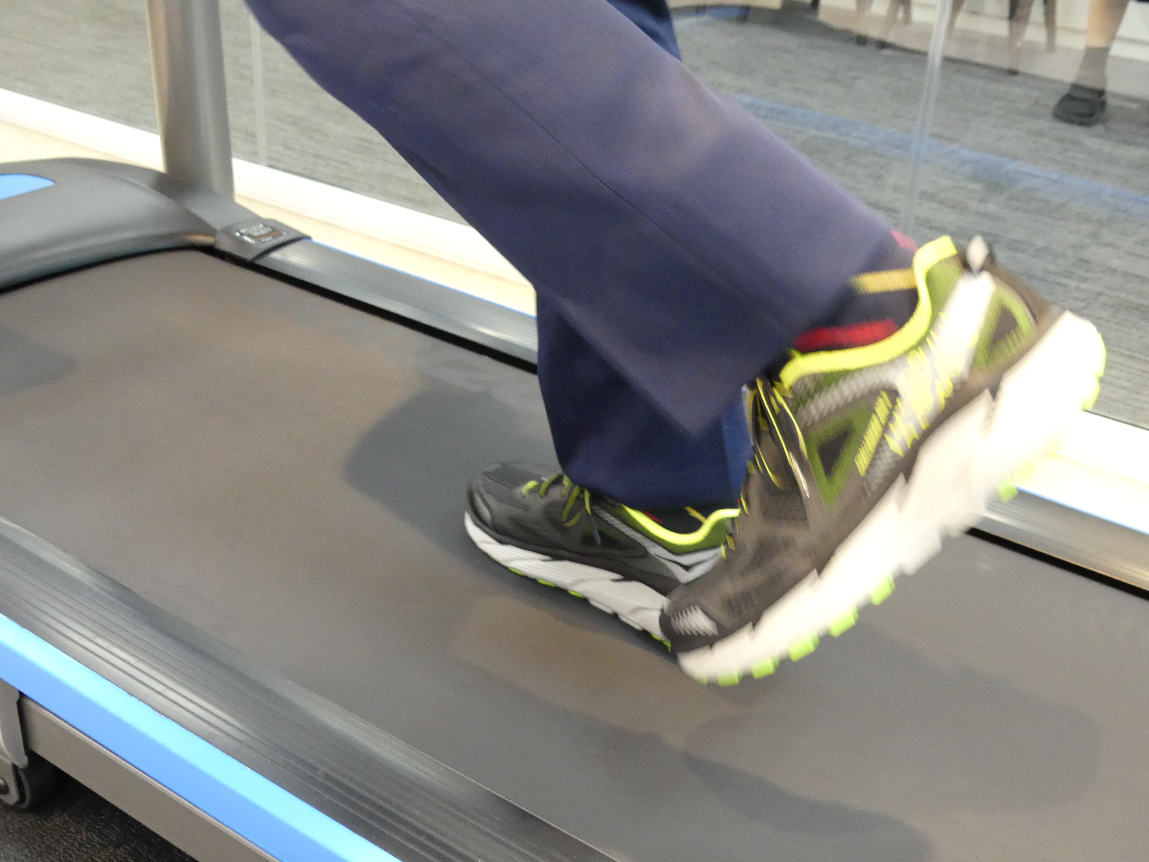というわけで、ランニングマシーンを使ってテスト走行。もう履いた感じが軽く、ぐんぐんスピードを上げたくなる。これは、ドロップの差を少なくし、つま先とかかと部分を滑らかに削ぎ落とした独自のアウトソール形状のおかげで、スムーズな足運びを誘導してくれているそう。自然に前に足が出る仕組みになっているということ。
