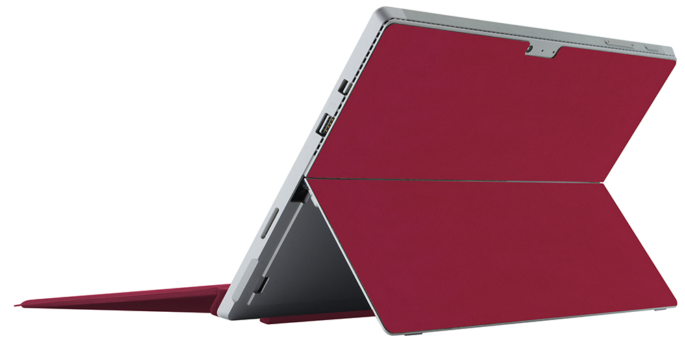 Surface用スタンドカバー「THE SUEDE SKIN」。背面に使われているスエードタッチの素材が上品な雰囲気を醸し出しています。素材は東レのマイクロファイバー技術から生まれた “Ultrasuede” 。超極細繊維を緻密に絡合させており、ソフトでありながらもボリュームがあるのが特徴。高級感を感じさせつつ通気性にも優れており、多くのファッション・インテリアプロダクトに用いられています。