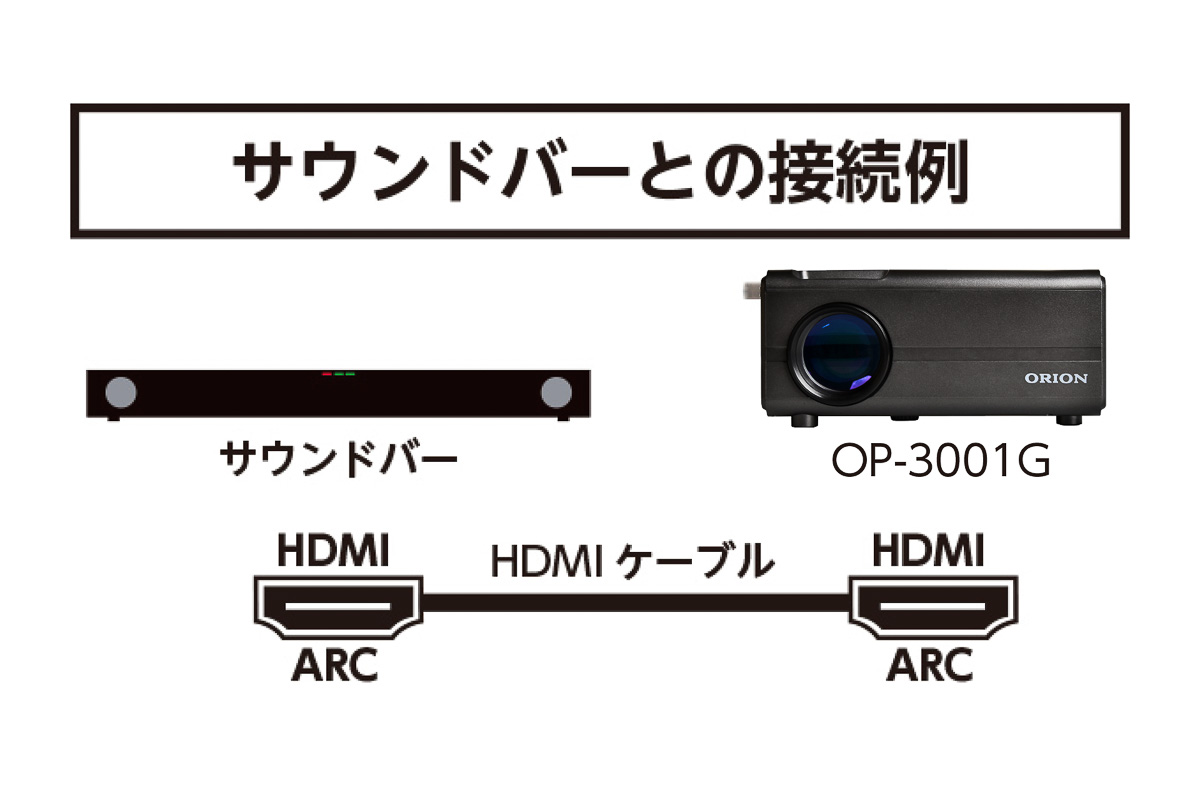 本体にスピーカーも内蔵されていますが、HDMI端子のARCやBluetooth接続に対応しているので、サウンドバーやワイヤレススピーカーから音を出すことも可能です。迫力の大画面に、臨場感のあるサウンドが加われば、自宅がまるで映画館に!