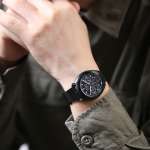 インパクトのあるレトロデザインも、オールブラックを纏ったことでキリっと精悍な表情に。アウトドアやミリタリーファッションはもちろん、スーツスタイルにも違和感なくマッチしてくれそうです!