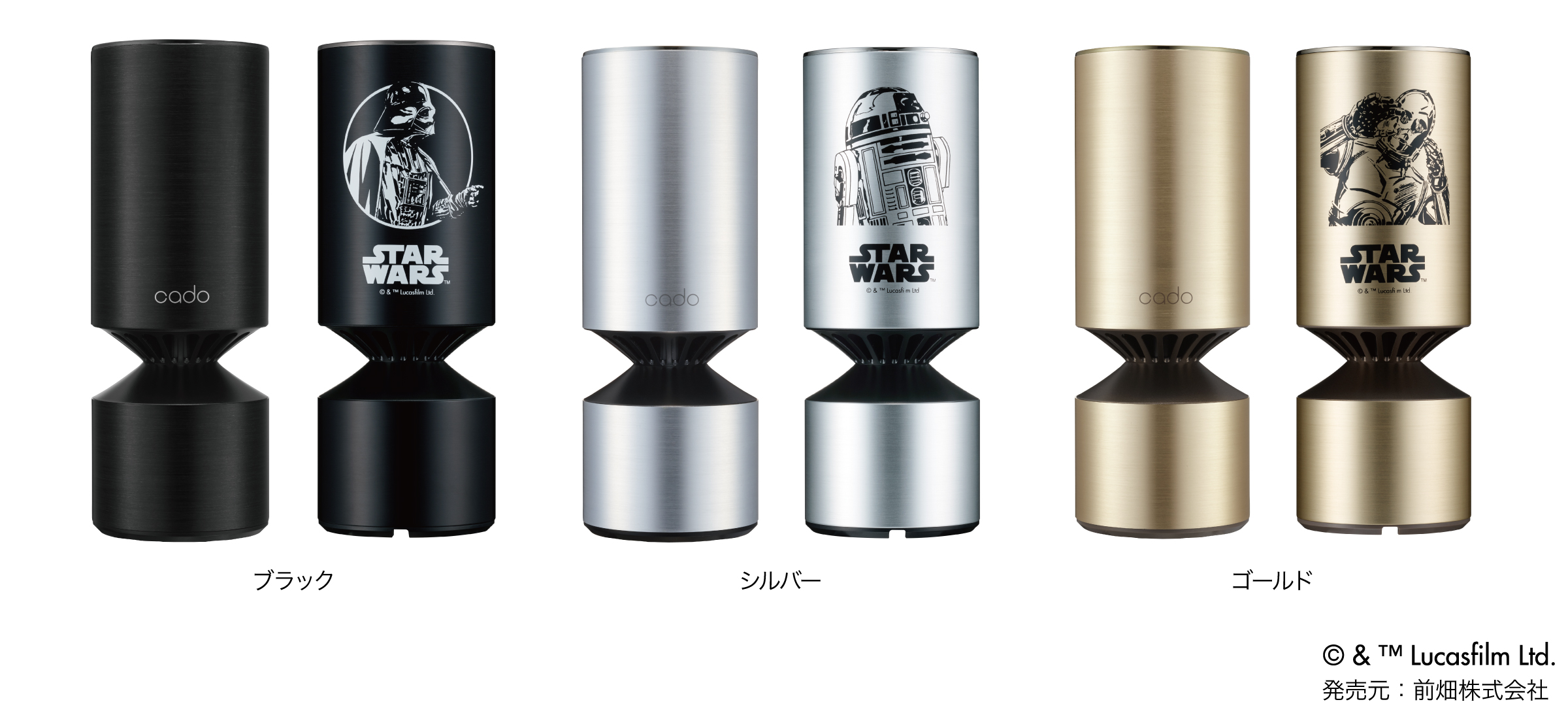 1枚のアルミニウムを絞り出し加工した繋ぎ目のないボディのフロントには、映画スターウォーズの人気キャラクターたちの姿が。ブラックの本体には「ダース・ベイダー」、シルバーには「R2-D2」、ゴールドには「C-3PO」がデザインされています。一見、空気清浄機には見えないオシャレなオブジェのようなこのアイテムは、人々の注目を集めそうです。