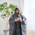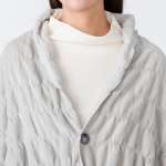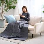 配置されたボタンの留め方によって肩掛けや袖のような形に変えられるため、読書や動画視聴、PC作業など、ひとつの姿勢を長く保ちたい場面と相性が良さそうです。カラーはグレーです。