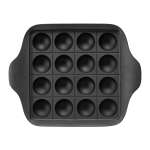 形づくりの工夫も丁寧です。穴の立ち上がり角度が計算されていて、生地がスッと抜けやすく、串が引っかかりにくい形状になっています。返すときに「くるん」と軽やかに回るあの感触を支えているのが、フチの高さと溝のライン。あふれた生地を区切って戻しやすく、大玉・まんまるに仕上げる動きと相性が良さそうです。鉄製なので千枚通しで返しても傷つきにくく、高温でも歪みにくいタフさも魅力です。