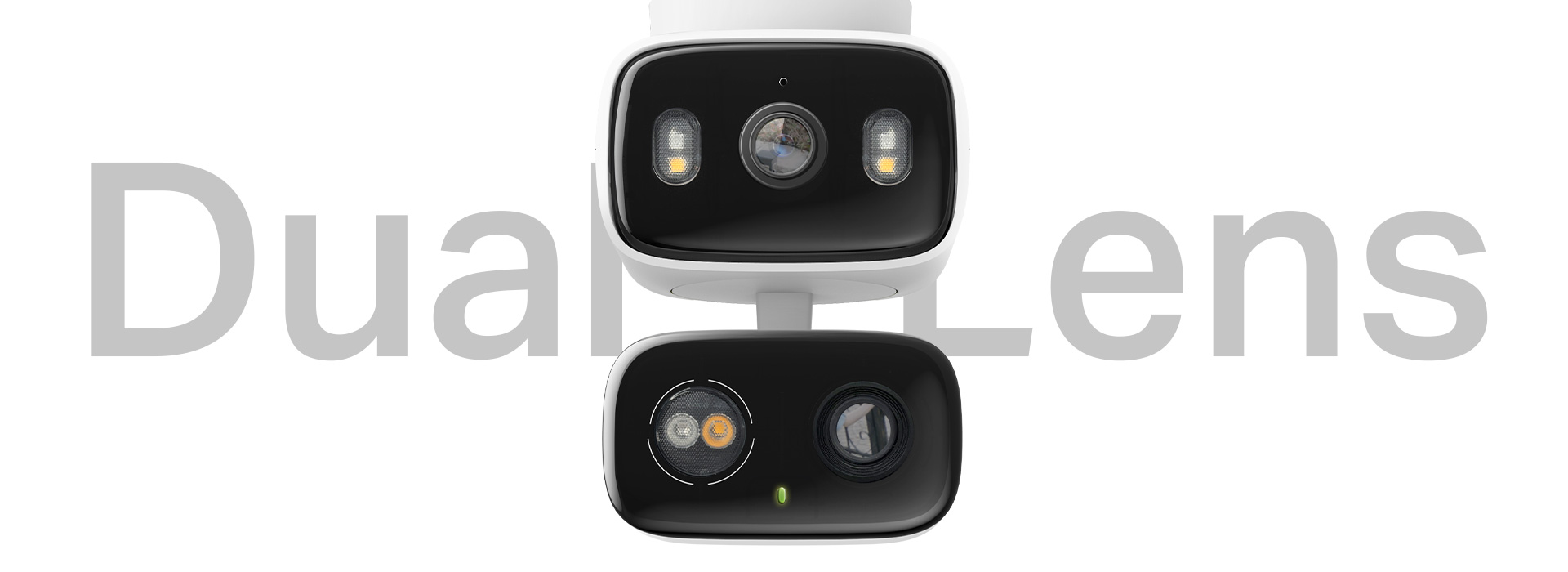 最大の特徴はやはりデュアルカメラ。上部のカメラは固定式ながら125度の視野角を持ち、下部のカメラは可動式の望遠レンズになっていて、水平方向に360度回転、垂直方向にも135度動けるというパンチルト機能付き。このふたつのカメラが連動することで、対象をしっかり捉えるという仕組みです。