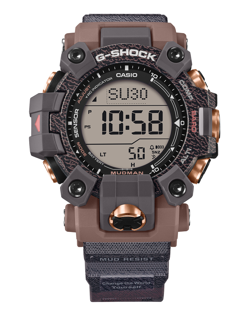 ベースモデルは「MUDMAN DW-9500」。泥や砂への耐性に優れ、過酷な環境にも耐える設計で、自然と向き合うテーマにふさわしい選択と言えます。