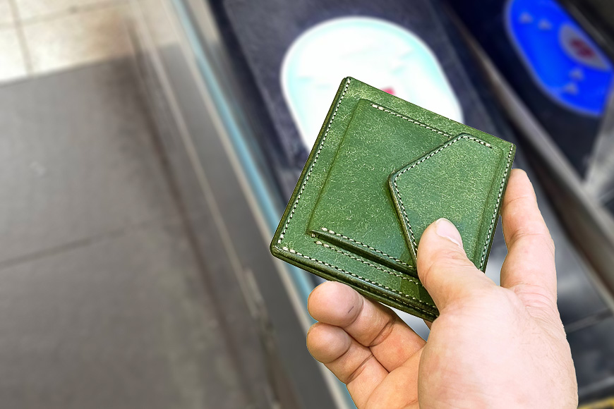 とはいえ、その小ささからは想像できない収納力を備えているのがポイント。カードポケットを3カ所備えるほか、ガバッとスクエア状に開くコインポケット、さらに紙幣入れも配置。ミニマムな見た目ながら、日常使いに必要なものはしっかり収まる設計です。