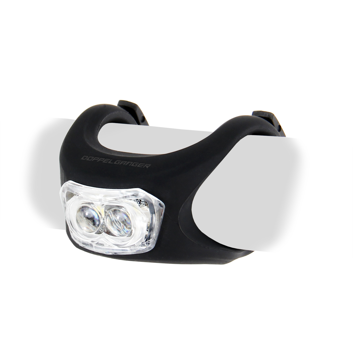 「ステムライト」は、X型のシリコンバンドにより自転車のステム(ハンドルバーを支え、ハンドルの動きをフロントフォークを通じて前輪に伝える部品)のクランプ(ステム先端のハンドルバーの中央部を掴む部分)に取り付けられるライトです。