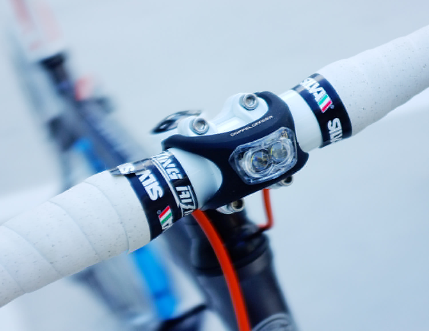スポーツ仕様の自転車に使われるフロントライトは、ハンドルバーに取り着けるものが主流。安全確保のため、先の路面を照らすメインライトと存在を知らせるポジションライトの2つを使い分けるサイクリストも多くいます。