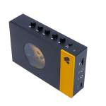 本体上部には再生、停止、早送り、巻き戻し、録音といった操作ボタンを配置。サイドにはボリュームコントロールや各種ジャック類がまとめられています。