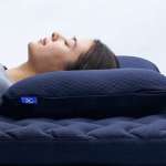 なお、こちらの枕は“仰向け寝”を前提に設計されています。“横向き寝”は一般的に気道が確保しやすいと言われていますが、肩や首に負担がかかるためあえて“仰向き寝”をフォーカスしているんだそう。前述のように、仰向けでも深い呼吸がしやすい構造のため、結果的に就寝時の仰向け時間を増やし睡眠中の体全体の負担軽減につながるとのこと。なお、サイドを少し盛り上げることで寝返りがスムーズにできる配慮もなされています。