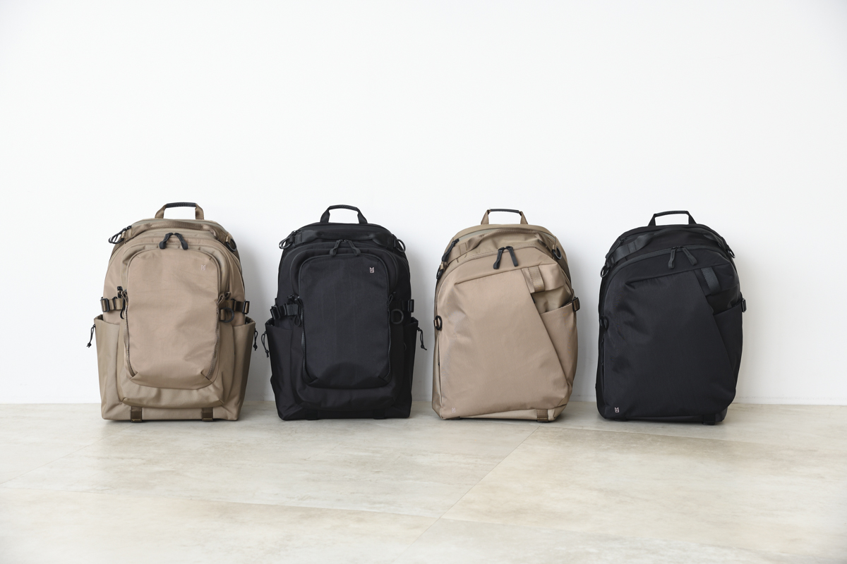 もう一つの「XTREC レイヤードバックパック」(2万5300円)は、生地やベルトを重ねた立体的な構造がポイントで、容量は約26L、重量は1070g。ガジェット類や厚みのある荷物を細かく仕分けしたい人に向いたつくりです。どちらもグレージュとブラックの2色展開で、冬のアウターにも馴染みやすい落ち着いた色味です。